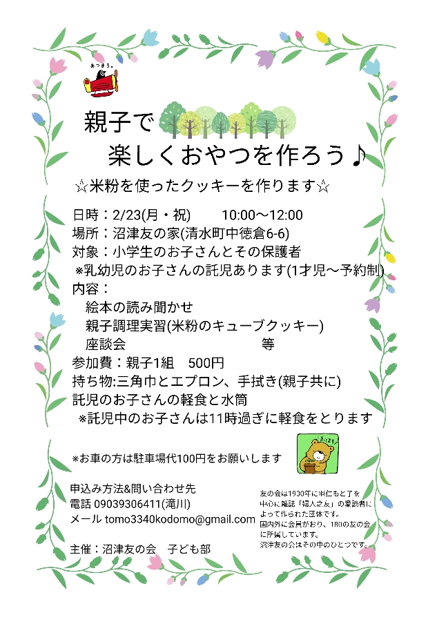 | 開催場所 | 沼津友の家 清水町中徳倉6-6 |