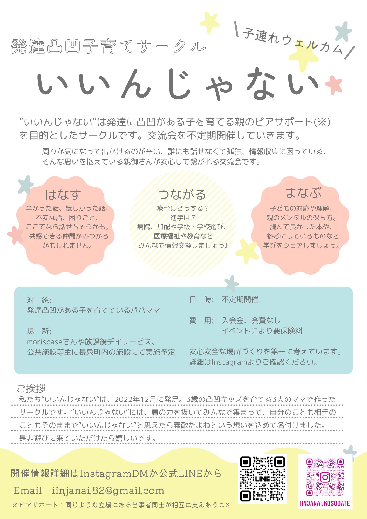 | 連絡先 | 発達凸凹子育てサークルいいんじゃない iinjanai.82@gmail.com |