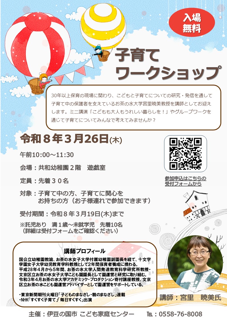 【託児】先着10人(満1歳児~就学前児童対象)