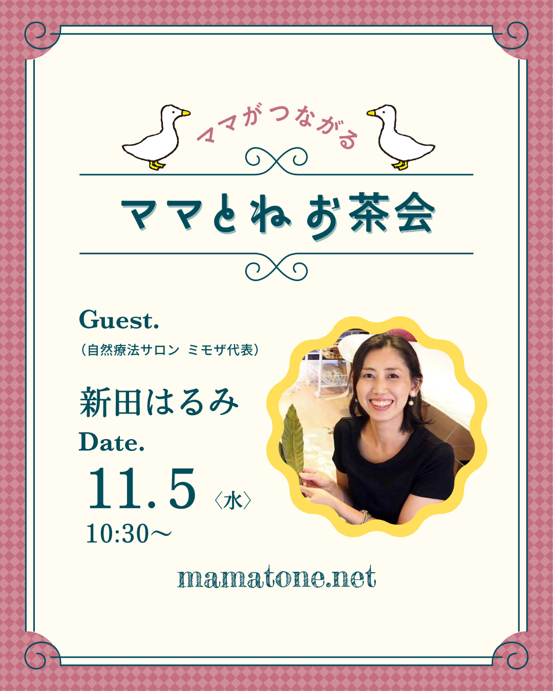 子供対象、親子対象のイベントだけでなく、ママが学ぶ場がほしい、少しだけ先輩ママの話を聞いてみたい、そういう声から、「ママがつながる『ママとね お茶会』」を企画してみました。