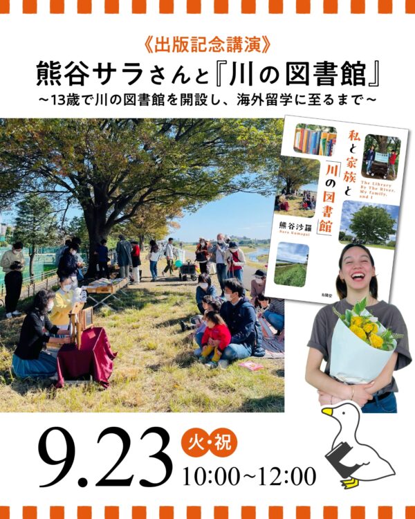 今回の講演会では、この書籍出版記念としての「川の図書館」のお話のほかに、自ら考えて自ら動いてきたサラさんの10代の軌跡として、話題の某通信制高校で過ごした高校生活や、これから飛び立つ留学への想いなどについてもお聞きしたいと思っています。